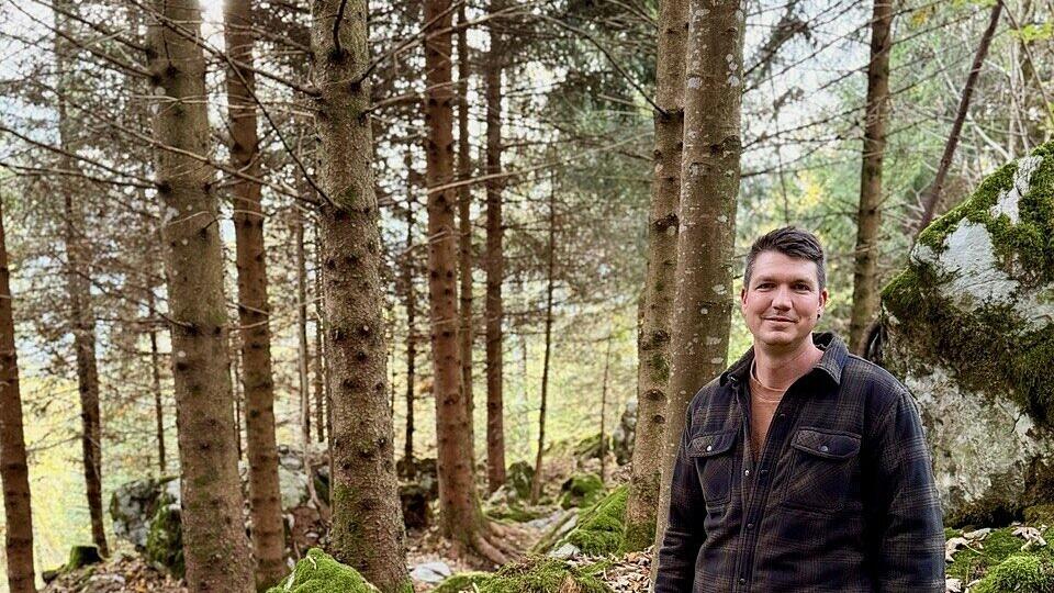 Der schmale Pfad führt vorbei an moosbewachsenen Steinen, absterbendem Holz, stolzen Buchen und Tannen. Der Waldboden ist übersät mit vielen Pilzen. Der Weg durch den Kirchenwald beim Meinradsrank, oberhalb des Windstocks, ist mit Holzschnitzeln ausgelegt und bedeckt von einer herbstlichen Blätterschicht. Die Natur stellt sich in ihrem ganzen Lebenszyklus dar: Junge und alte Bäume, welkes Gestrüpp, das im nächsten Frühling zu neuem Leben erwachen wird.