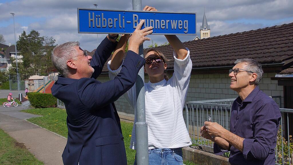 Das Beachvolleyball-Starduo Tanja Hüberli (Reichenburg) und Nina Brunner brachte es im vergangenen Jahr an der Olympiade in Paris zu Bronze. So war es nur recht, dass kürzlich ihr und ihrer Mitstreiterin zu Ehren ein neuer Weg eingeweiht wurde: der «Hüberli-Brunnerweg». «Fehlt da nicht ein Bindestrich?», fragten sich einige mit Blick auf das neue Strassenschild.
