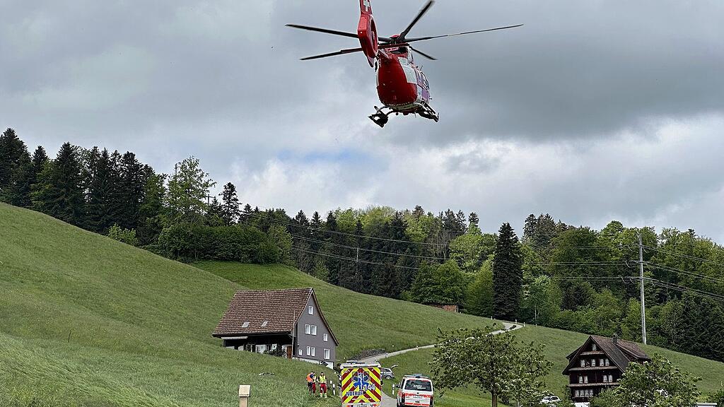 Nach dem Zusammenstoss zwischen Hund und Velo waren Rettungsdienst und Rega vor Ort im Einsatz.