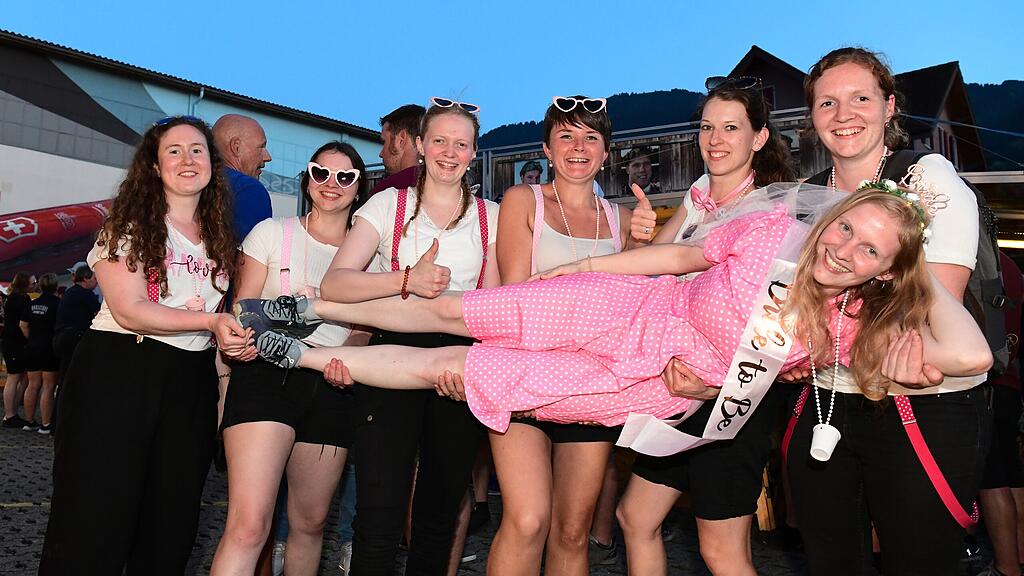 Am Freitag und am Samstag fand auf dem «Schöntal»-Areal in Oberarth das 17. «Horseshoe»-Fest statt. Insgesamt feierten mehrere Hundert Gäste ein gemütliches Fest. Fünf DJ sorgten für abwechslungsreiche Musik. Unter den Gästen befanden sich mehrere Gruppen, die Polterabend feierten. Unser Bild zeigt die angehende Braut Nicole aus Luthern mit ihren Kolleginnen.