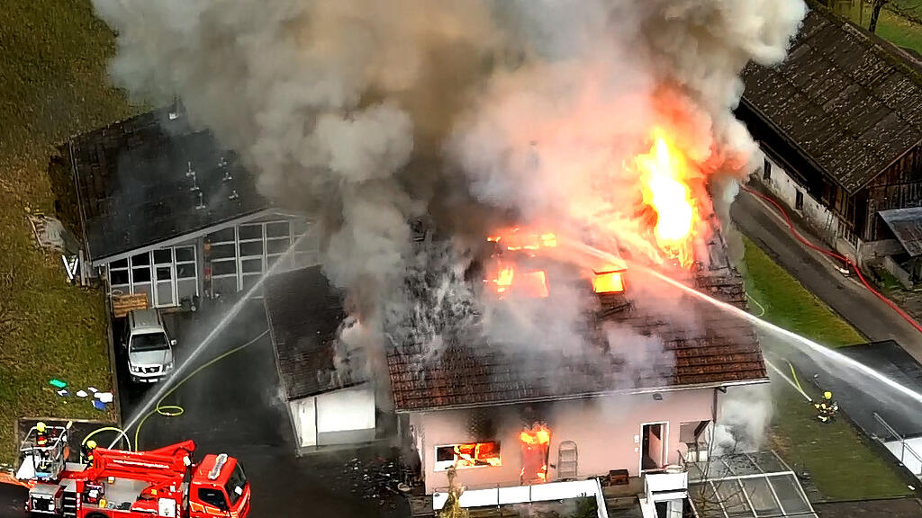 Als die ersten Einsatzkräfte der Feuerwehr Gemeinde Ingenbohl am Sonntagmorgen nach 8 Uhr auf dem Brandplatz eingetroffen waren, stand das ältere mehrgeschossige Wohnhaus bereits in Vollbrand. Flammen schlugen meterhoch aus dem Dachstock und aus den Fenstern. Alle Bewohnerinnen und Bewohner in den zwei Wohnungen konnten das Gebäude rechtzeitig verlassen.