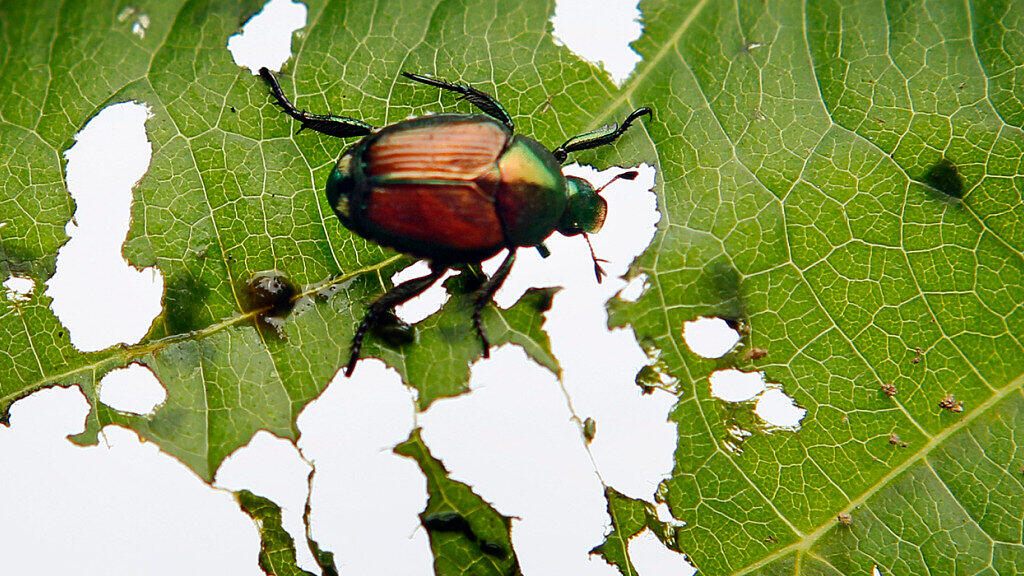 Die im Naturschutzgebiet Sägel gefundenen Japankäfer, hier ein Beispiel aus dem Ausland, sollen durch Fadenwürmer bekämpft werden. (Archivbild)