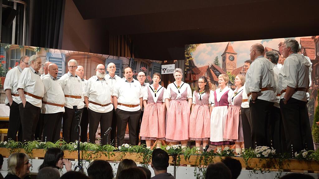 Bereits vor 19 Uhr strömten die Gäste in den festlich geschmückten Saal – und schnell war klar: Das Jubiläumskonzert des Jodlerclubs Brunnen würde ein besonderer Anlass werden. Die Bühne war als Dorfplatz gestaltet mit den Fassaden der Restaurants Löwen und Ochsen.