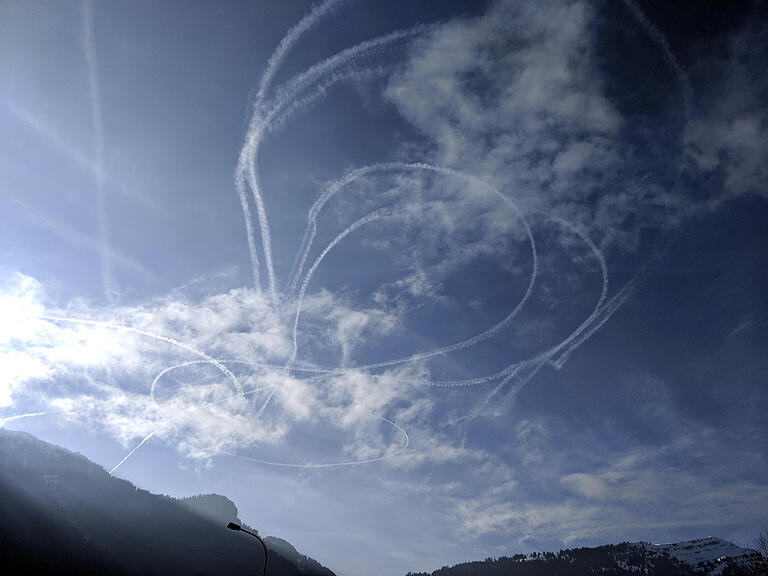 Grund waren die optimalen atmosphärischen Bedingungen. Mit der richtigen Luftfeuchtigkeit und Temperatur waren die Kondensstreifen minutenlang klar zu erkennnen.