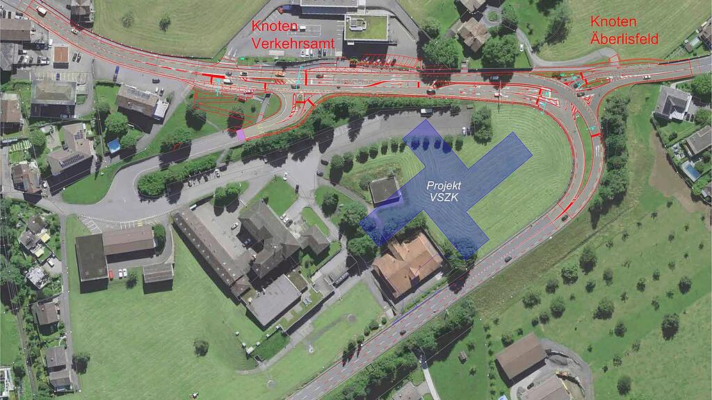 Die Strassenknoten beim Verkehrsamt an der Schlagstrasse (H8) in Schwyz werden mit Lichtsignalanlagen umgebaut. Grund ist der Bau des Verwaltungs- und Sicherheitszentrums Kaltbach. Geplant ist laut einer Mitteilung des Kantons Schwyz vom Donnerstag, dass die Bauarbeiten für die Strasse frühestens im Frühling 2026 begonnen werden und die ersten Vorbereitungsarbeiten für den Bau im Herbst 2026. Die Fertigstellung des Neubaus ist auf Ende 2029 vorgesehen.