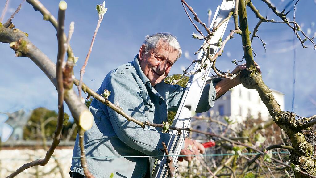 Bruder Edmund Furrer beim Schneiden der Obstbäume. Er wird bei der Bewirtschaftung des Gartens unterstützt durch Freiwillige aus der Umgebung: «Es sind sehr hilfsbereite Menschen.»