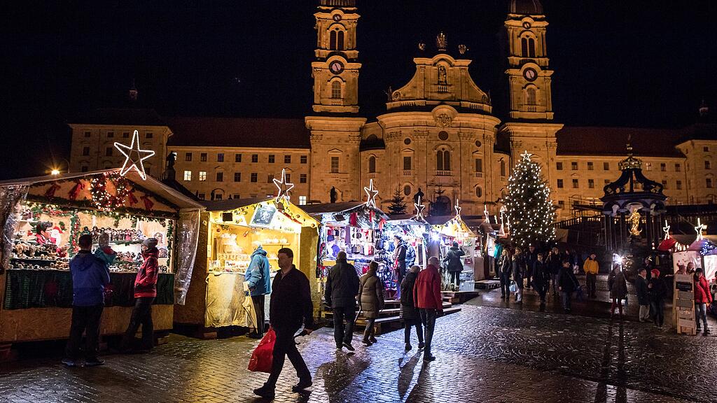Der Einsiedler Weihnachtsmarkt beim Kloster Einsiedeln lockt jährlich viele Besucherinnen und Besucher an.