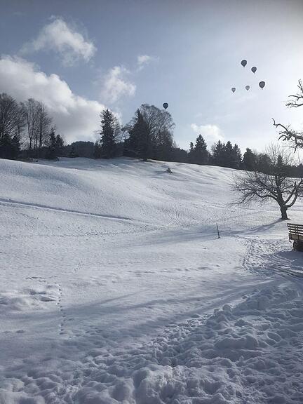 Die Ballone stiegen an einem traumhaften Wintertag in die Luft.