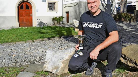 Ivo Furrer zeigt seine Preise vom Wettkampf in Yverdon: Er will seine Sammlung erweitern – auch noch als 40-Jähriger.