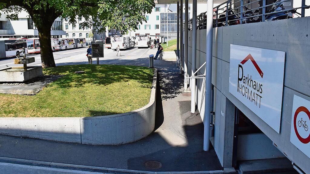 Das bestehende Parkhaus Hofmatt würde durch einen Anbau unter dem zu sanierenden Bushof Schwyz erweitert. Äusserlich würde sich nichts ändern. Bild: Franz Steinegger
