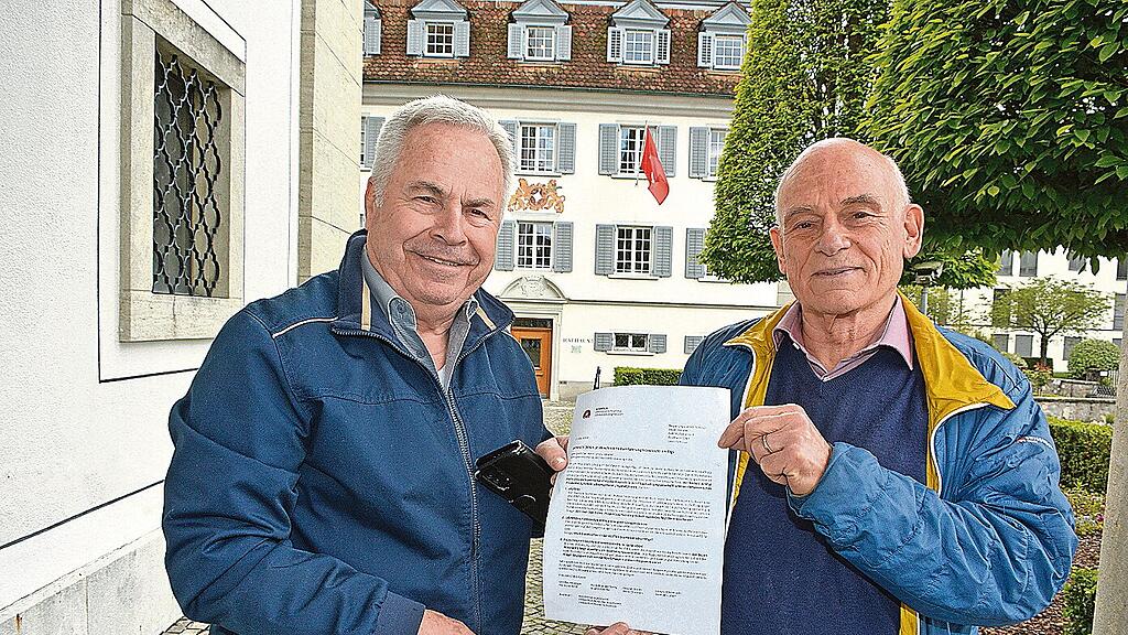 Die beiden Alt-Bezirksammänner Hans Lüthold (links) und Urs Baumberger mit dem offenen Brief an den Regierungsrat.