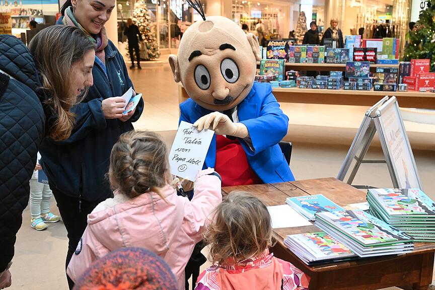 Am Mittwoch wurde eine Schweizer Ikone im Oktagon des Mythen Centers gesichtet: Papa Moll. Im Rahmen seines neuen Buchs «Papa Moll und das Unwetter» organisierte das Mythen Center Schwyz eine Foto- und Autogrammstunde, bei der Jung und Alt der beliebten Comicfigur für rund drei Stunden etwas näherkamen. Nicht nur die Kinder erfreuten sich über seinen Besuch, sondern auch Jugendliche zückten das Handy, um Fotos zu schiessen – und die Eltern der Kinder ganz besonders. (klz)