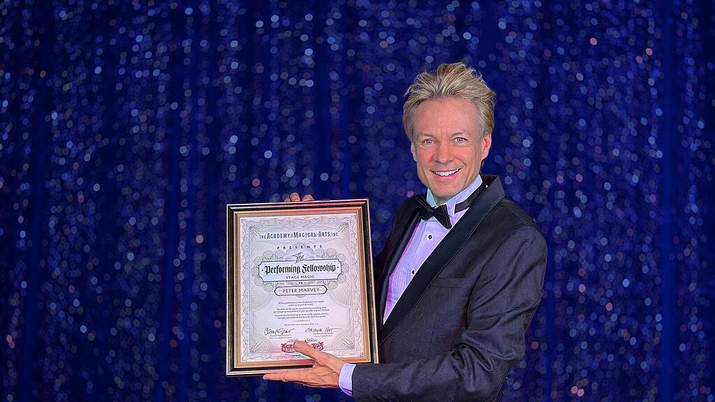 Peter Marvey schreibt Geschichte: Der Schwyzer Star-Illusionist Peter Marvey wurde in Los Angeles mit einem der höchsten internationalen Preise der Zauberkunst ausgezeichnet. Die renommierte Academy of Magical Arts verlieh ihm am 2. Juni feierlich den «Performing Fellowship» in der Sparte Bühnenmagie – eine Auszeichnung, die auch als «Oscar der Magie» gilt.
