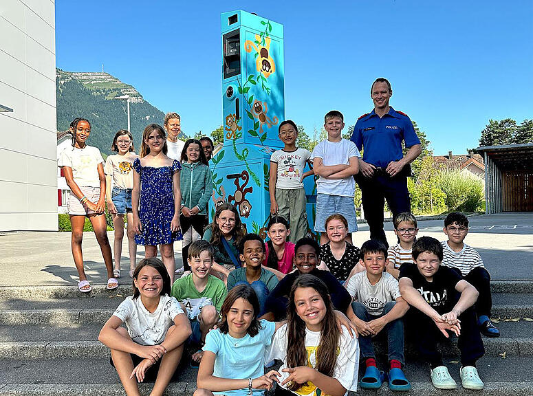 «Mit bunten Farben, einfallsreichen Motiven und viel Fleiss gestalteten die Kinder einmalige Kunstwerke auf zwei semistationären Geschwindigkeitsmessanlagen. Die auffälligen Geräte sollen auf sympathische Weise zur Einhaltung der Tempolimits im Bereich von Schulwegen animieren und so zu mehr Sicherheit im Einzugsgebiet von Schulanlagen beitragen», heisst es in einer Mitteilung der Kapo Schwyz.