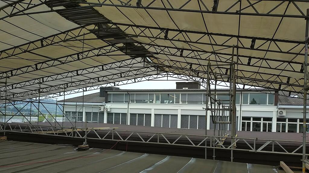 Vor Kurzem fand im Gewerbezentrum Hohle Gasse die Raclüh-Aufrichte-Stubetä statt. Das alljährliche Winterfest für alle Mietenden erhielt in diesem Jahr eine besondere Bedeutung: Es wurde gleichzeitig das Aufrichtefest für eines der grössten Bauprojekte in der jüngeren Geschichte des Gewerbezentrums gefeiert – die umfassende Sanierung des markanten Sheddachs. Ein Sheddach ist eine Dachform, die aus mehreren hintereinander gereihten Pultdächern besteht, wodurch es optisch an ein Sägeblatt erinnert .
