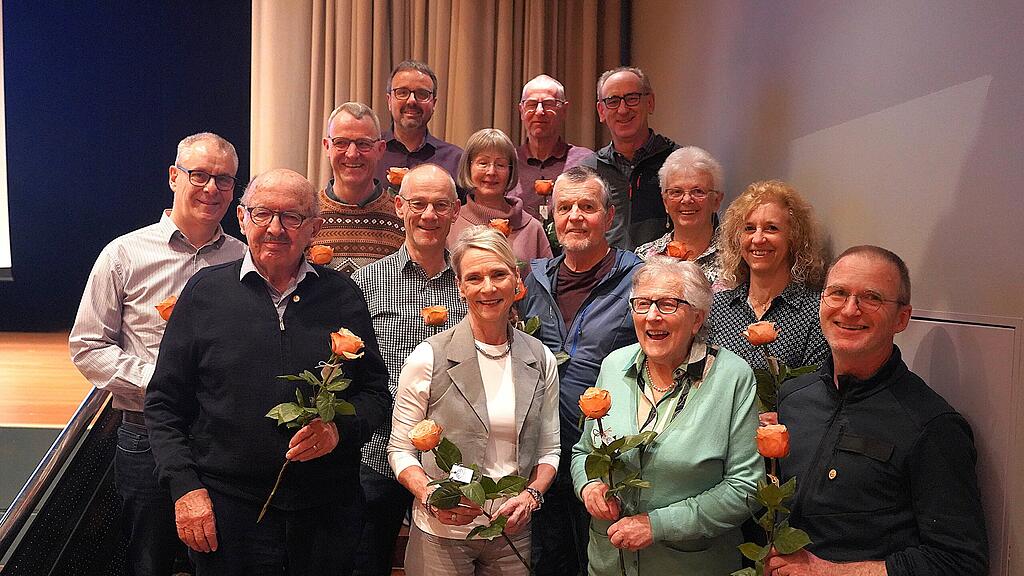 Die gefeierten Jubilare und Jubilarinnen mit dem Rekordveteranen Konrad Annen (65 Jahre) vorne links.