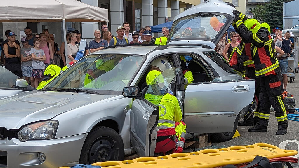 Zum grossen Jubiläum konnte man eine grosse Schar an Besucherinnen und Besuchern willkommen heissen. Einer der Höhepunkte war die Strassenrettungs-Demonstration in Zusammenarbeit mit der Feuerwehr Stützpunkt Schwyz.