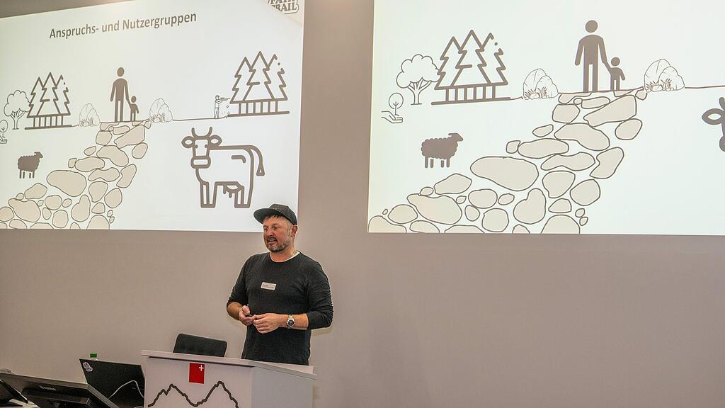 Thomy Vetterli, Geschäftsführer der Bikegenossenschaft Zentralschweiz, schilderte, wie das respektvolle und tolerante Miteinander auf den Wanderwegen und in der Natur gehen soll.