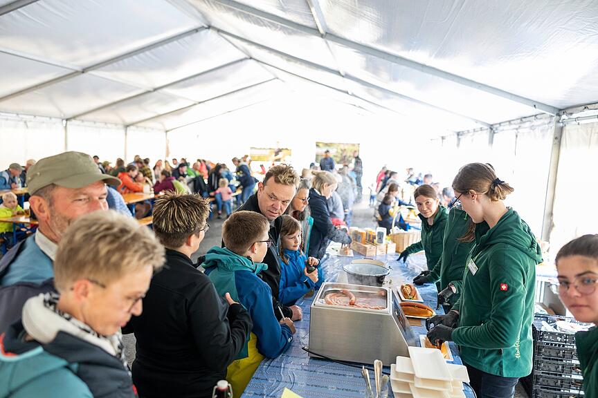 Mit interessant gestalteten Beschilderungen wurde den Besuchenden etwas übers Produkt erzählt, aber auch viele Mitarbeitende waren anwesend, welche ihr grosses Wissen teilten. Die 40 Mitarbeitenden werden am Mittag auf dem Hof jeweils von Koch Reto Fust mit hofeigenen Produkten verköstigt. Am Wochenende konnten auch die Besuchenden Fusts Kochkunst einmal probieren.