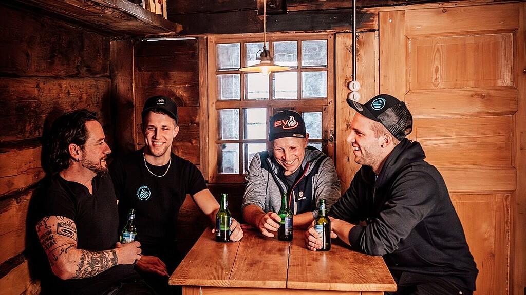 Gemütlich sitzen Roger, Cyrill und Simon Rusch mit Marc Trauffer in einer Alphütte weit oberhalb Grindelwald. Bereits seit zwei Tagen nimmt der selbst ernannte «Alpentainer» im Beisein von Komponist, Songschreiber und Produzent Georg Schlunegger hier neue Lieder auf. Und eigentlich hätten auch «z Ruschä» aus dem Wägital schon früher dabei sein sollen. «Wir waren am Wochenende aber aufgrund von Auftritten ausgebucht», erklärt Simon Rusch. Damit es mit der gemeinsamen Single doch noch klappte, nahmen sich die drei den Montag frei und reisten verspätet ins Berner Oberland.