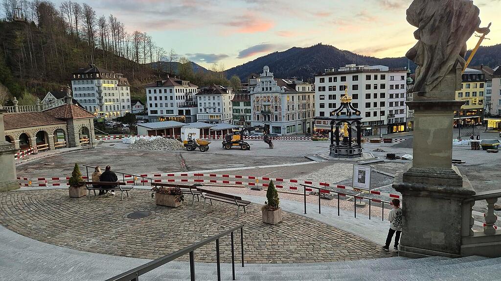 Der 40’000 Quadratmeter grosse Platz vor dem Kloster Einsiedeln war vor 20 Jahren von der Strasse zerschnitten und von Autos voll gestellt, zudem in einem schlechten Zustand. Seit 2007 sammelt das Kloster Geld, um die Umgebung der Klosteranlage zu sanieren und neu zu gestalten – mit der namhaften finanziellen Unterstützung der Vereinigung der Freunde des Klosters Einsiedeln. Die Erneuerung des Platzes und der Arkaden begann 2014. Den Anfang machten die Arkaden, gefolgt vom unmittelbaren Bereich vor der Klosterkirche.