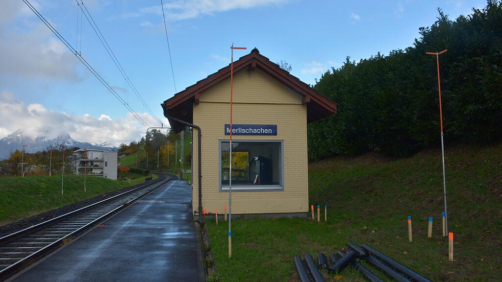 Der vorhandene Wartebereich soll modernisiert werden: Die Haltestelle Merlischachen verfügt über keinen hindernisfreien Zugang zu den Zügen.