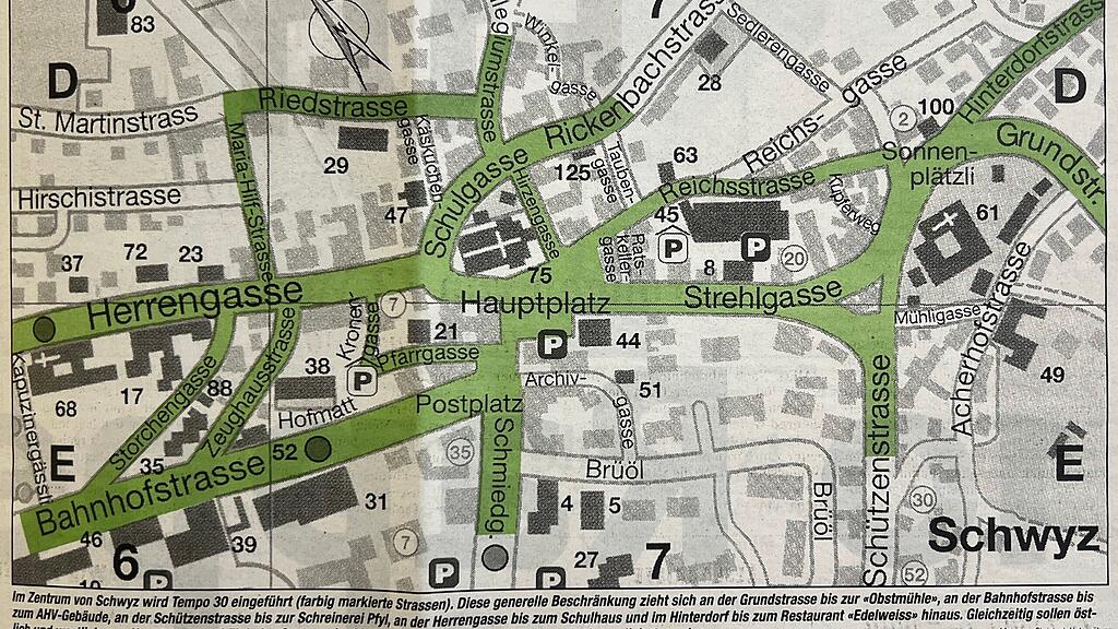 Der Verkehr im Hauptort Schwyz ist wie ein gordischer Knoten – ein schwieriges Problem, das es zu lösen gilt. Dies zeigt ein Rückblick: Vor 25 Jahren wurden die derzeit diskutierten Verkehrsthematiken zur Entlastung des Zentrums bereits ausgebreitet. Geplant war erst die Sperrung der Reichsstrasse, also jene Strasse, die heute als Einbahnstrasse ob dem Mythenforum verläuft. Ein emotional geführter Streit zur Schliessung der Strasse entbrannte, der in einem Verkehrsversuch mündete: Die angestrebte Entlastung des Hauptplatzes und damit des Zentrums von Schwyz vom Durchgangsverkehr wurde vor 25 Jahren mit dem Verkehrsversuch Tempo 30 geprüft. Während zweier Monate wurde untersucht, wie sich dies auf das Verkehrsverhalten auswirkt.