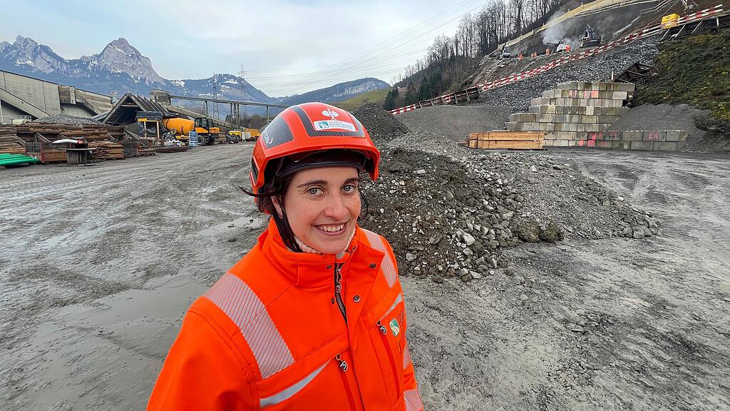 Die 38-jährige Ingenieurin Carolina Camus leitet die grösste Strassenbaustelle des Kantons Schwyz. Am 11. Dezember steht sie mit Helm und Leuchtweste unterhalb des Anstichs für den Morschacher Tunnel auf der Baustelle. Als Oberbauleiterin Nord ist sie verantwortlich für die Arbeiten der A4 Neue Axenstrasse auf Schwyzer Boden – den Morschacher Tunnel mit Entwässerungsstollen. Sie sei vom Typ her eher etwas scheu, sagt die Südamerikanerin über sich selbst und schaut dabei einem Bauarbeiter auf einem Bagger in die Augen. «Es ist wichtig, mit den Maschinisten immer Augenkontakt zu halten», sagt sie, «aus Sicherheitsgründen.» Dann schaut auch der Maschinist der Frau in die Augen und lächelt.