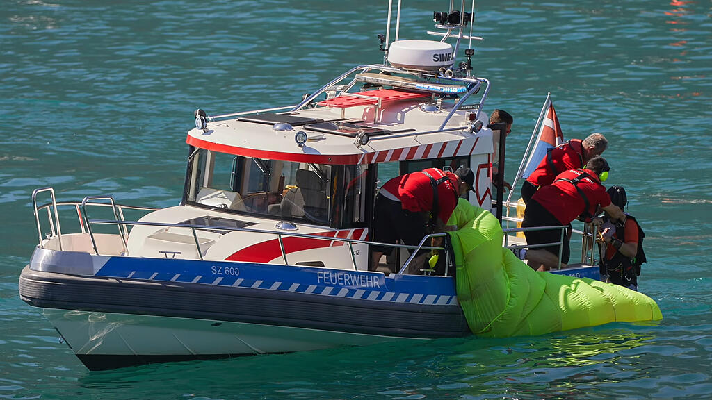 Spannende Einsatz-Demo auf dem Vierwaldstättersee vor Brunnen: Durchgespielt wurde die Rettung von zwei Fallschirmpiloten nach einer Notwasserung.