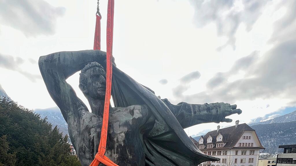 Die Bronzestatue «Wehrwille» von Bildhauer Hans Brandenberger ist am Gründonnerstag an ihre Geburtsstätte zurückgekehrt. Die 6,5 Tonnen schwere Plastik wird bis Mitte Mai in der Giesserei Rüetschi in Aarau saniert und kehrt dann zurück nach Schwyz.