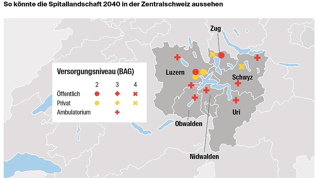 Akutspitäler nur noch in den Kantonen Luzern und Zug: Dieses Bild zeichnet ein Gesundheitsökonom. Regierungsrat Damian Meier beruhigt.