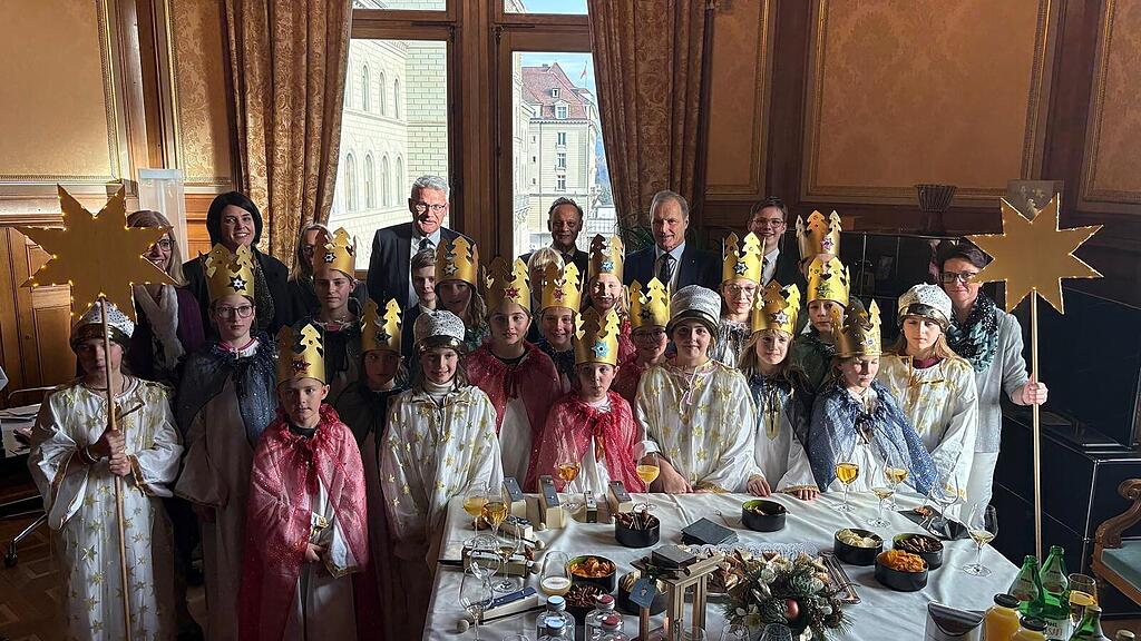 Die jungen Sternsingerinnen und Sternsinger aus Sattel überbrachten ihren Segensspruch für das neue Jahr und erinnerten an die Werte von Frieden, Gemeinschaft und Solidarität.