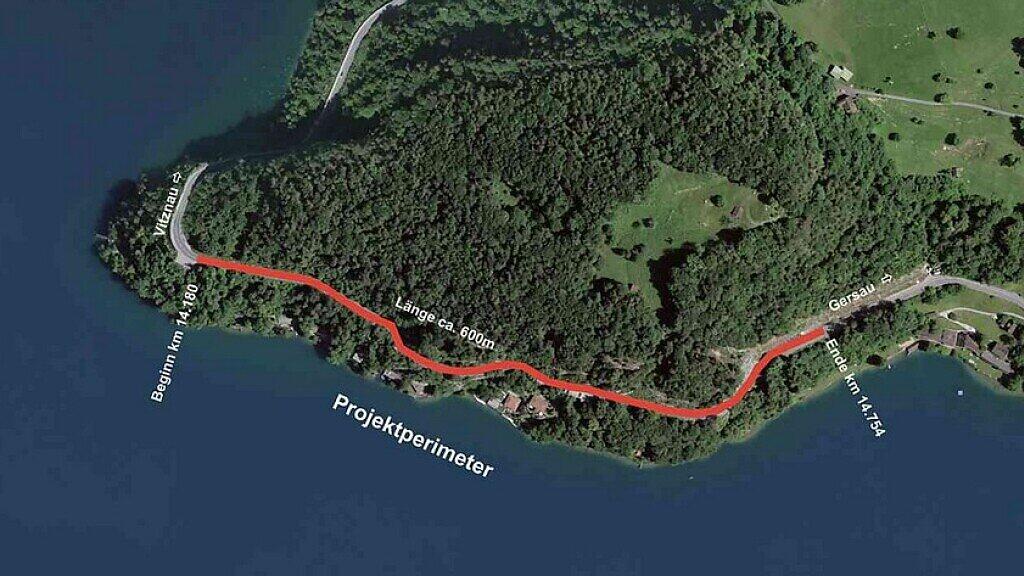 Der 600 Meter lange Abschnitt liegt zwischen der Ober Nas und Rotschuo und ist Bestandteil der Kantonsstrasse Küssnacht-Brunnen. Er entspreche nicht mehr den technischen Anforderungen an eine leistungsorientierte Hauptstrasse, teilte die Staatskanzlei Schwyz am Donnerstag mit.