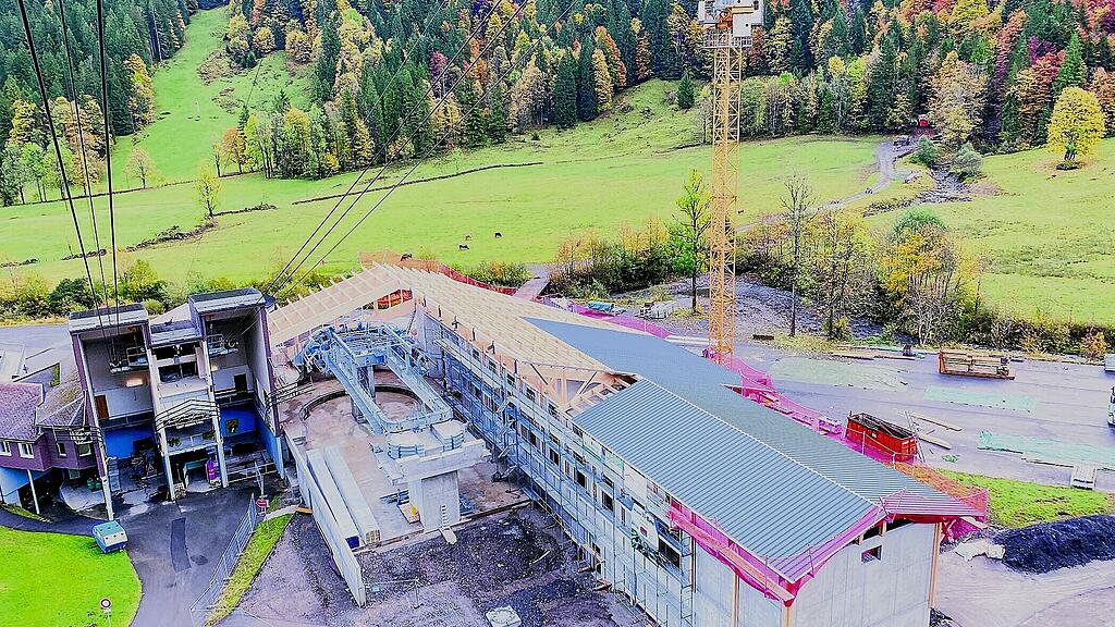Die neue 3S-Zubringerbahn mit 18 Gondeln von der Weglosen ins Hoch-Ybrig, deren System von der Garaventa-Doppelmayr AG entwickelt wurde, wird mit nur zwei Stützen auskommen. Sie wird die erste Bahn ihrer Art sein. Eine Stütze konnte bereits erstellt werden, ebenso die Bergstation, für die die Bauarbeiten beinahe abgeschlossen sind.