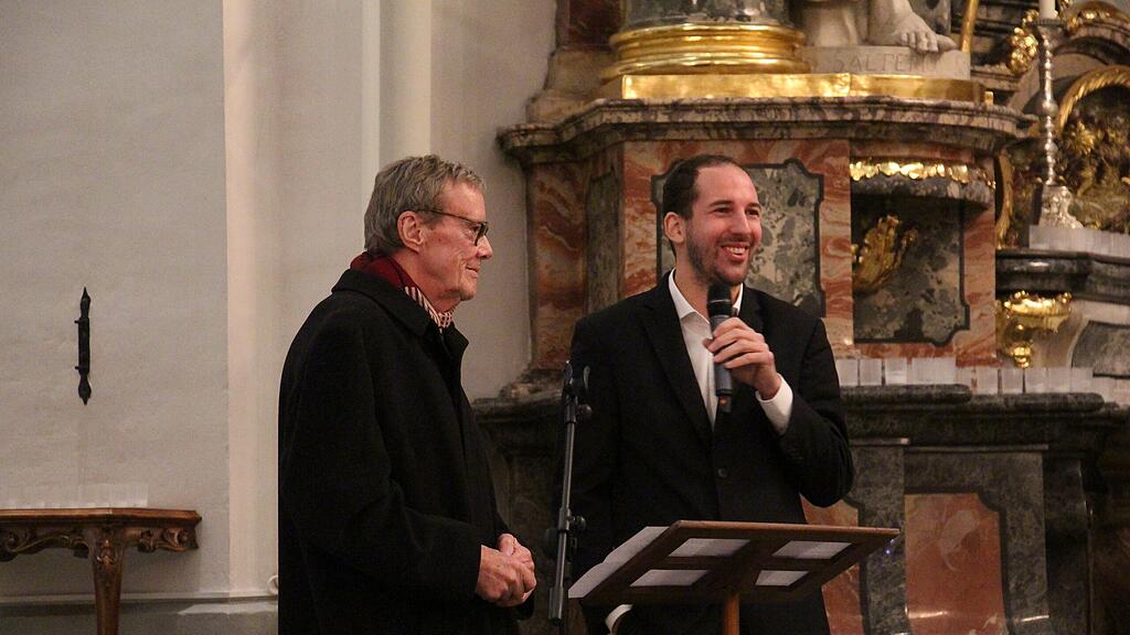 Der Tessiner Organist liess es sich nicht nehmen, das Publikum persönlich zu begrüssen, und dankte Hans Schibli (links) für die tolle Organisation des Konzerts.
