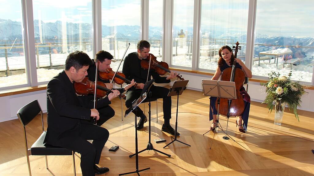 Das Stradivari-Quartett begeisterte an der Sonntagsmatinée auf Rigi Kulm mit zwei Streichquartetten von Mozart: Xiaoming Wang (Violine, von links), Stefan Tarara (Violine), Lech Antonio Uszynski (Viola), Maja Weber (Violoncello).