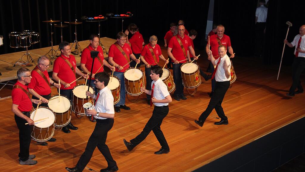 «Trommele isch cool», würden sowohl Jungtambouren als auch die Aktive Sektion und die Alte Garde auf die Frage antworten, warum sie trommeln, erklärte Präsident Fabian Steiner gegen Ende des Tambourenabends. Darum sei Trommeln etwas Generationenübergreifendes und treffe den Nerv der Zeit. Dies bewiesen die Trommlerinnen und Trommler bereits bei Beginn des Abends eindrücklich, als alle miteinander auf die Bühne traten und gemeinsam den «Wirbel-Rückbau» vortrugen. Die humorvolle Begrüssung und die witzigen Ansagen übernahmen zwei Tambouren aus der Aktiven Sektion, Lukas Gisler und Carlo Schmidig.