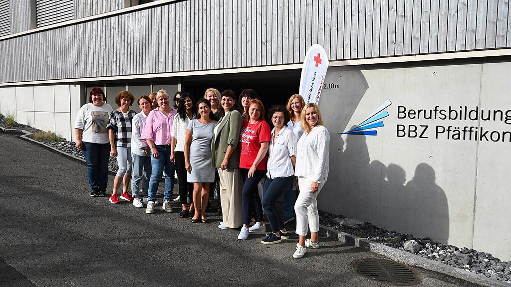 Das Amt für Migration hat zusammen mit dem Schweizerischen Roten Kreuz (SRK) Kanton Schwyz, dem Berufsbildungszentrum Pfäffikon und dem «Netzwerk Ukraine» ein Pilotprojekt ins Leben gerufen. Geflüchteten aus der Ukraine soll der Berufseinstieg erleichtert werden, zudem kann damit dem Fachkräftemangel in der Pflege entgegengewirkt werden. Am 19. August startete der neue Kurs Pflegehelfende SRK MiCura im Haus der Gesundheit des Berufsbildungszentrums Pfäffikon (BBZP) mit 15 Teilnehmerinnen aus der Ukraine.