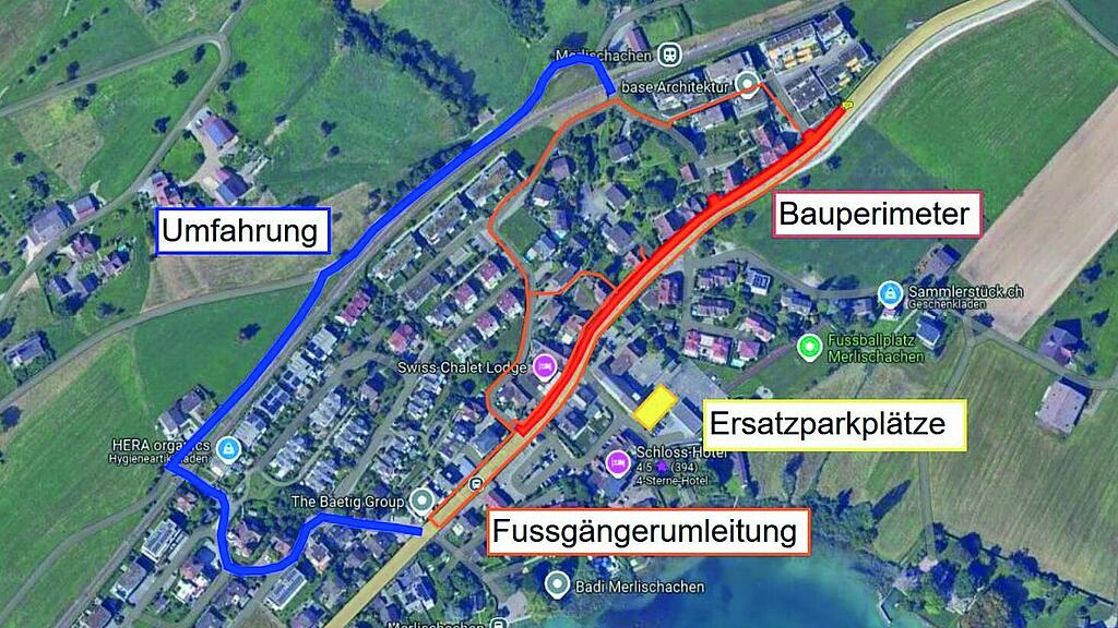 Im September wird der fehlende Deckbelag auf der Kantonsstrasse in Merlischachen eingebaut. Während der Bauarbeiten kommt es voraussichtlich vom 1. bis zum 12. September zu temporären Verkehrseinschränkungen.