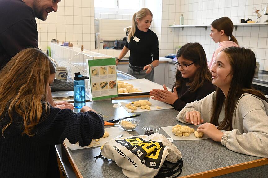 14 Ateliers wurden durch die Schülerinnen und Schüler vorbereitet, und viele Ehemalige halfen, dem grossen Ansturm gerecht zu werden. Während die jüngeren Kinder meist mit einer Begleitperson bastelten, waren die älteren alleine unterwegs. «Vom beliebten Kerzenziehen bis hin zu neuen Angeboten wie Kräutersalz herstellen ist alles dabei», so Karin Thiele, Leitung Gymnasium. Mit Pizza und Pasta oder einem feinen Kuchen vom Buffet verpflegt, liess es sich hervorragend einen kreativen Tag im Theri verbringen. Termin in die Agenda 2026 eingetragen – check!