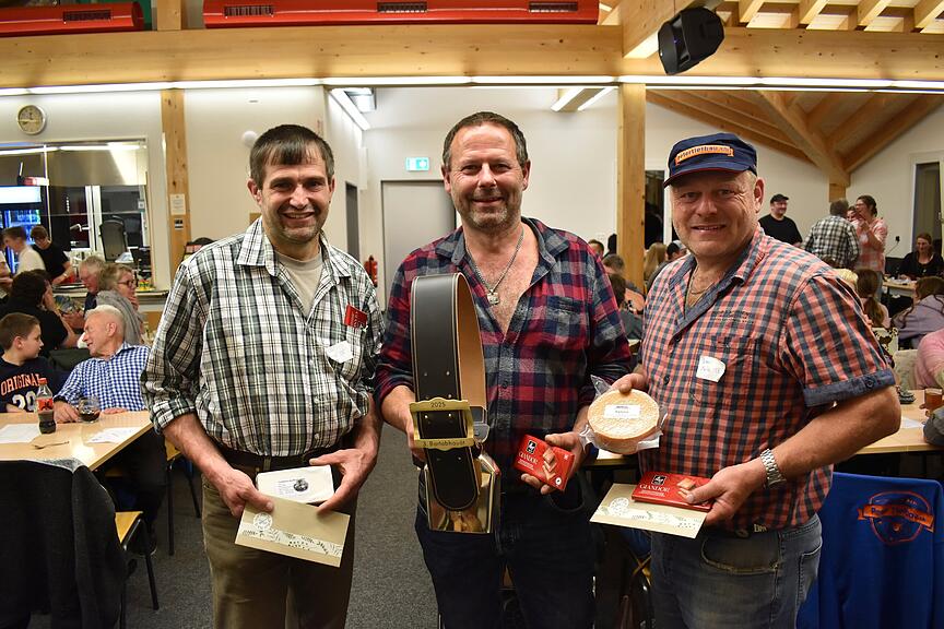 Für die Teilnehmer konnten einen Preis auswählen, Hauptpreis war ein «Trichäli». Daneben gab es Fleisch, Käse, Honig, Wein, Gutscheine und dergleichen mehr zu gewinnen. Nach dem Wettkampf und der Rangverkündigung, die Markus Kälin als «Arbeitsteil» kurz vor Mitternacht beendete, ging es mit Ländlermusik und ungezwungenem Beisammensein weiter.