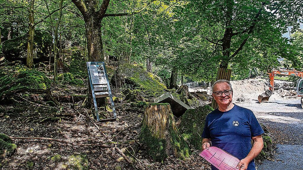 Hier entsteht die neue Wildschweinanlage des Tierparks Goldau. Im Hintergrund von Bauchef Joe Michel rechts beim Bagger der Standort der alten Anlage und links der Hügel, der integriert wird.