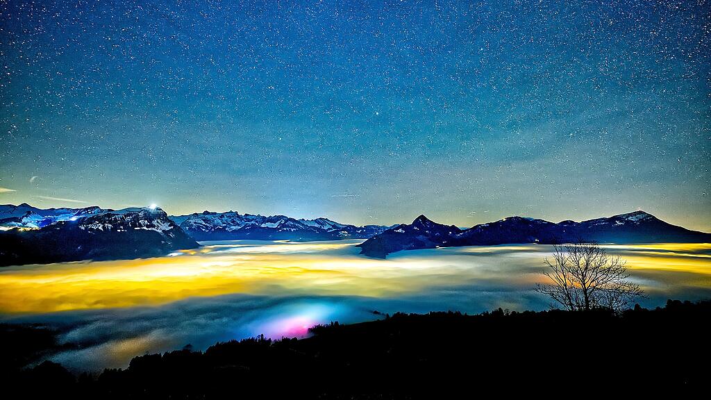 Geminidennacht am Wochenende über dem Nebelmeer in Schwyz: Zu bestaunen gab es viele Sternschnuppen.