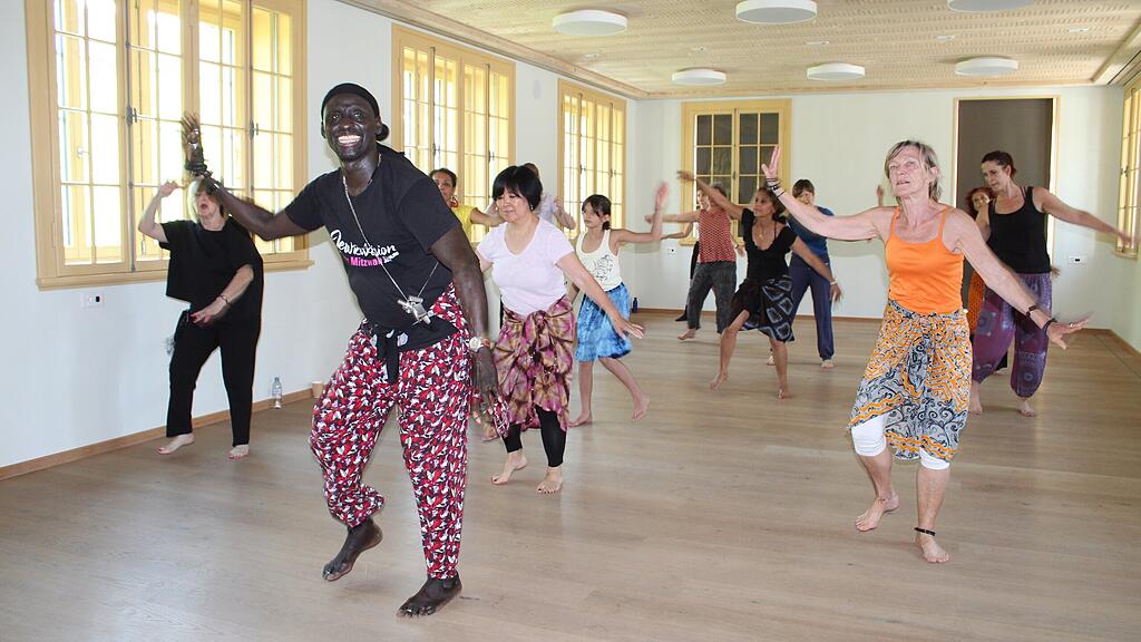 Rhythmischer Trommelwirbel erklang am Samstagnachmittag im Kulturraum « i de Fabrik » in Schwyz. Frauen aus der ganzen Schweiz tanzten dazu die westafrikanischen Tänze Djembé und Sabar, gemeinsam mit dem senegalesischen Tänzer Nago Gueye Koité . Der 66-Jährige lebt in Berlin, bietet afrikanische Tanzworkshops in ganz Europa an und ist bekannt für seine fröhliche Ausdrucksform.