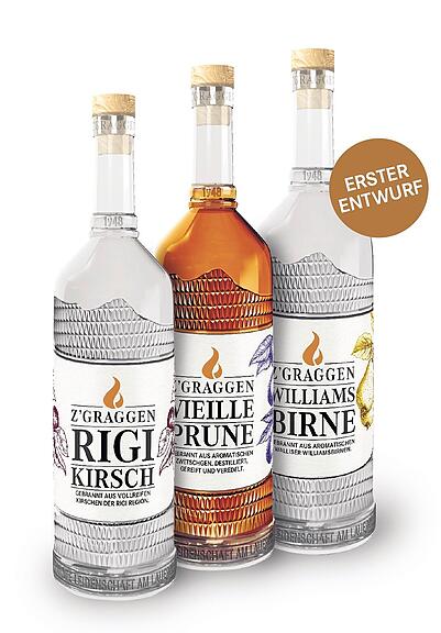 Die neuen Z’GRAGGEN-Spirituosen-Glasflaschen werden im Herbst lanciert, rechtzeitig auf die neue Weihnachtssaison.