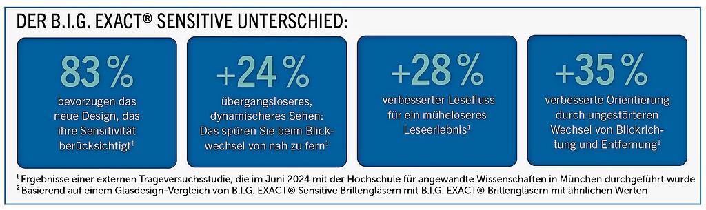 Was macht B.I.G. EXACT® Sensitive so einzigartig? «Natürliches, entspanntes Sehen entsteht aus dem harmonischen Zusammenspiel von Augen und Gehirn. B.I.G. EXACT® Sensitive berücksichtigt und unterstützt Ihr gesamtes Sehsystem präzise wie noch nie. Dafür vermessen wir Ihre Augen mit dem DNEye® Scanner exakt. Aus Ihren Daten berechnet Rodenstock mit künstlicher Intelligenz Ihre visuelle Sensitivität und optimiert das Design Ihrer Brillengläser», erklären Roger Borner und Pascal Odermatt.