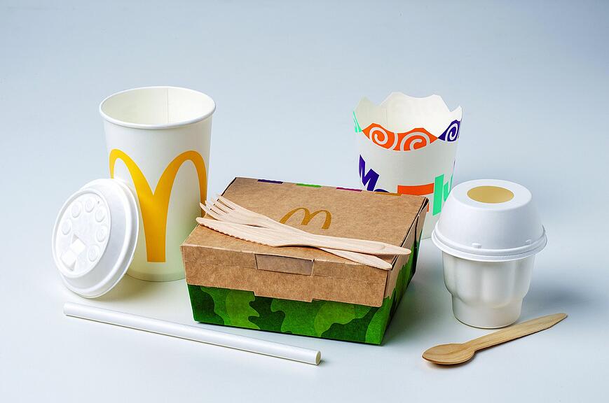 Nicht nur beim Spielzeug, sondern insbesondere bei den Verpackungen reduziert McDonald’s Schweiz den Plastikanteil kontinuierlich. Schon 2021 wurde bei den Frappé-Produkten auf Papierbecher und auf Löffel ohne Plastikverpackung umgestellt. Neu gibt es die Salate in einer umweltfreundlichen Salatbox und mit Holzbesteck. Auch die Trinkbecher haben neu plastikfreie Deckel, durch die auch gleich getrunken werden kann, womit das Röhrli wegfällt. Und im Restaurant werden die Deckel ganz weggelassen. Als Gastronomieunternehmen möchte McDonald’s bis 2025 80 Prozent des heute noch in den Verpackungen vorhandenen Plastiks reduzieren, sodass maximal noch 2 Prozent aller McDonald’s-Verpackungen aus diesem Rohstoff bestehen. Bis Ende 2022 wird McDonald’s rund 200 Tonnen Plastik einsparen.