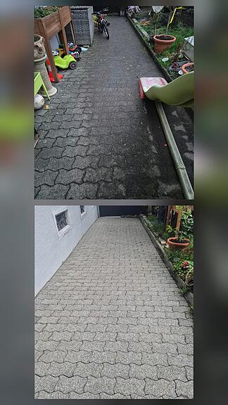 Clean hartnäckige Verschmutzungen auf Steinplatten, Natur-, Pflaster- und Verbundsteinen bei Einfahrten, Terrassen, Gehwegen, Grabsteinen und vielem mehr. Der Unterschied vor und nach der Reinigung begeistert die Kundschaft. «Wir reinigen, pflegen und imprägnieren auch Stein- und Keramikbeläge im Haus», fügt Martin Stehli hinzu.