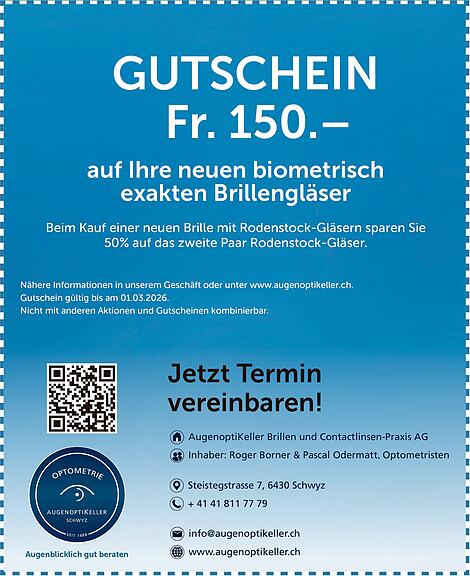 AugenoptiKeller in Schwyz gilt als Spezialist für Gleitsichtbrillen. Die Verbindung aus fachlicher Kompetenz und moderner Messtechnik ermöglicht individuell angepasste Brillen, die Nah-, Zwischen- und Fernsicht scharf darstellen, hohen Tragekomfort bieten und eine schnelle Eingewöhnung ermöglichen.