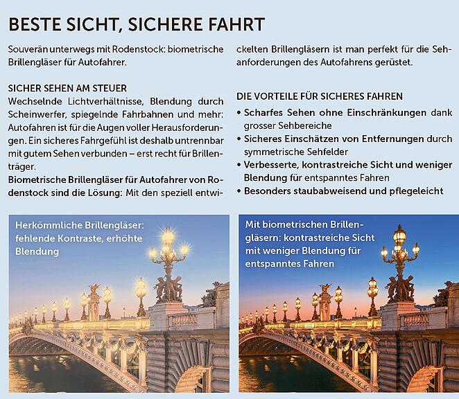 AugenoptiKeller versteht die Sehbedürfnisse jedes Kunden und entwickelt Lösungen, die zum jeweiligen Lebensstil passen. Ob lange Computerarbeit, Autofahren, Lesen oder aktiver Alltag, die Sehbereiche der Gleitsichtbrille werden gezielt angepasst. Sie nehmen sich Zeit, um Ihre täglichen Sehgewohnheiten zu analysieren, und nutzen die biometrischen Daten, um eine Brille zu gestalten, die höchsten Komfort bietet. Rodenstocks biometrische Gläser minimieren Verzerrungen und Schaukeleffekte, die bei herkömmlichen Gläsern oft stören, und sorgen für ein natürliches, entspanntes Sehen, das sofort überzeugt.